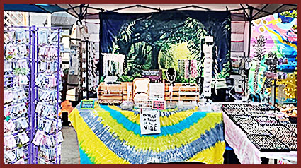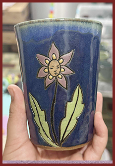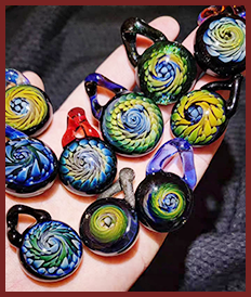 Stained glass ornaments and bottle lamps.